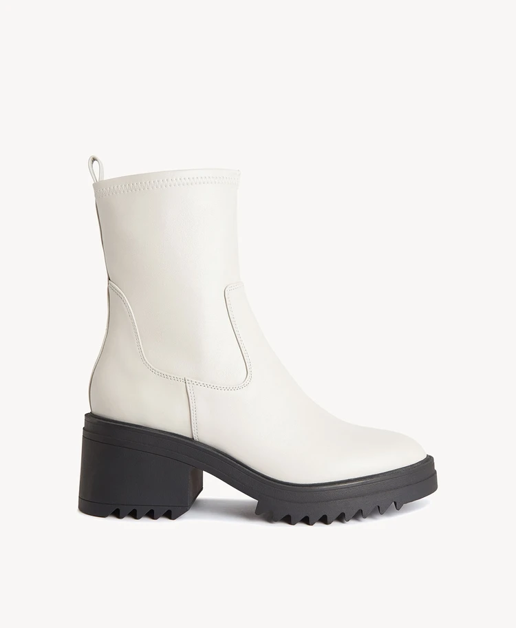 A refined silhouette elevates the simple nature of our Bing ankle boot. With a leather upper and synthetic stretch sock like ankle fit. Grounded on a rubber outsole, these ankle boots were designed for all weather wear.