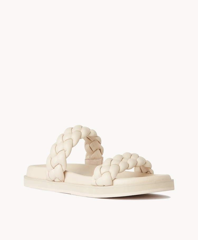 With braided non-leather straps and leather lining, the Coco slide is anything but boring. Whether you pair them with ankle-brushing maxi dresses or leather shorts, this slip on will be your go to in warmer weather.