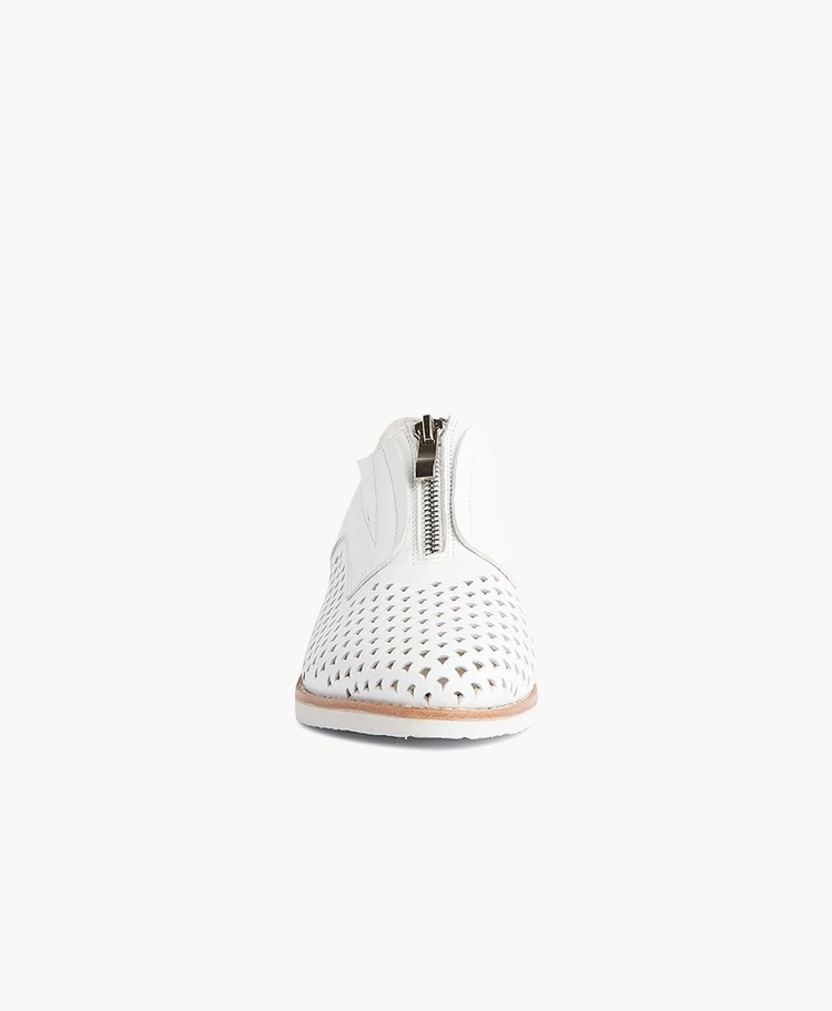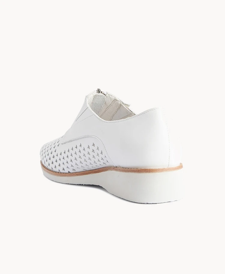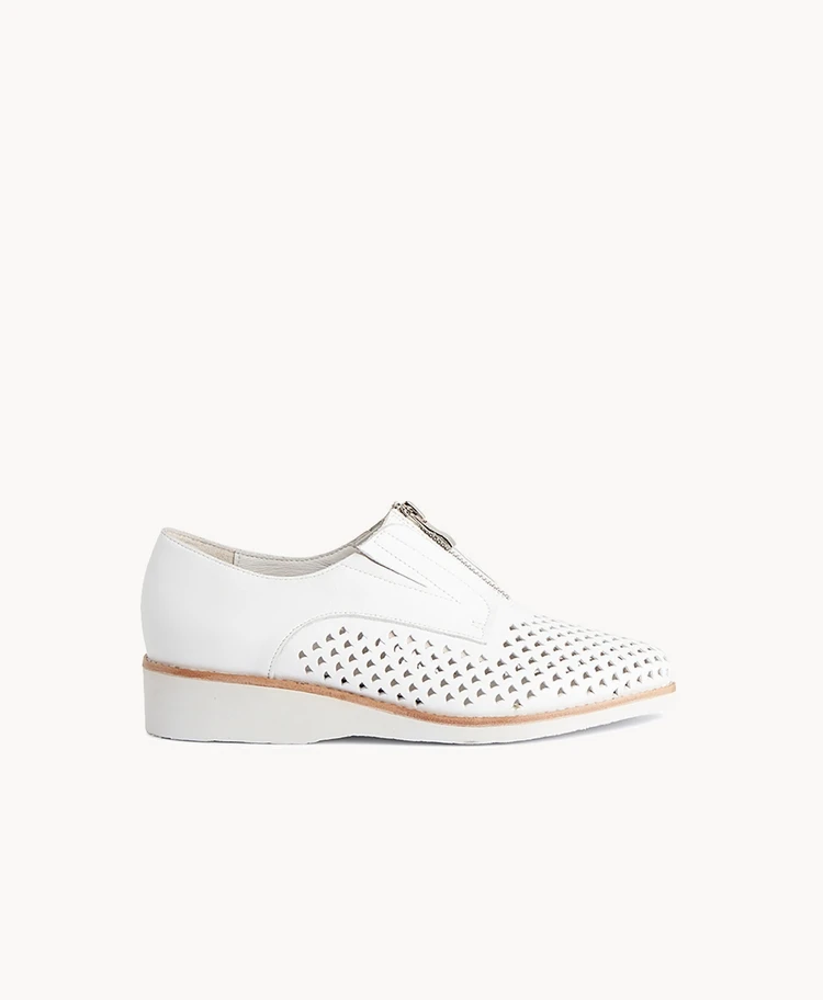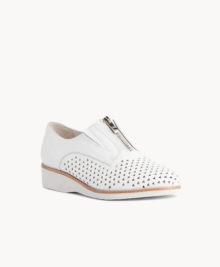 A fresh summer style perfect for pairing with denim or linen pieces, Demi features a low wedge heel, a geometric laser cut upper, and centre zip for ease in and out.
