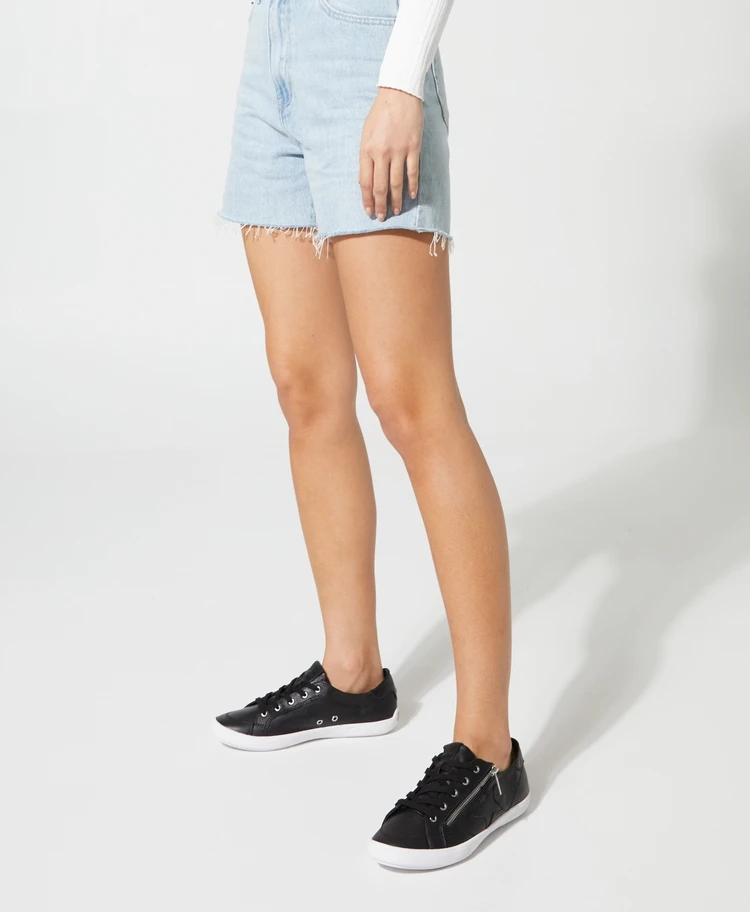Our Dianna zip sneaker has the kind of ‘lived in’ styling that will just get better with age. This low profile style has been updated with a luxe zipper that is functional for ease in and out. Pair these with modern cargo pants for a cool off-duty look.