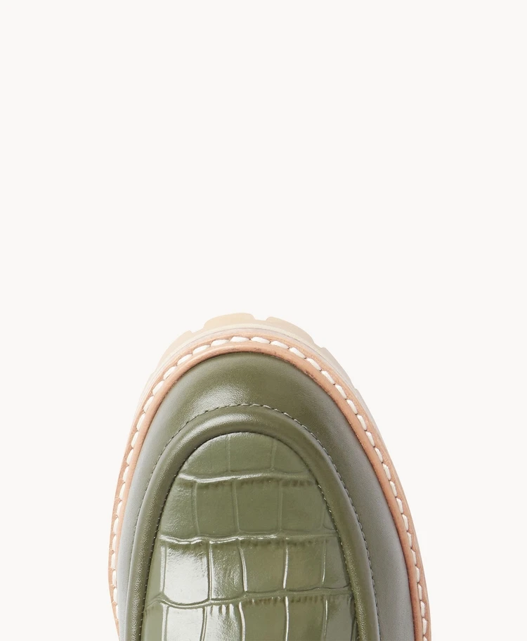 The rubber tread sole on our English loafer adds ultimate comfort and wearability to this classic style. The croc effect leather detail really elevates these, perfect for pairing with long coats on cold days.