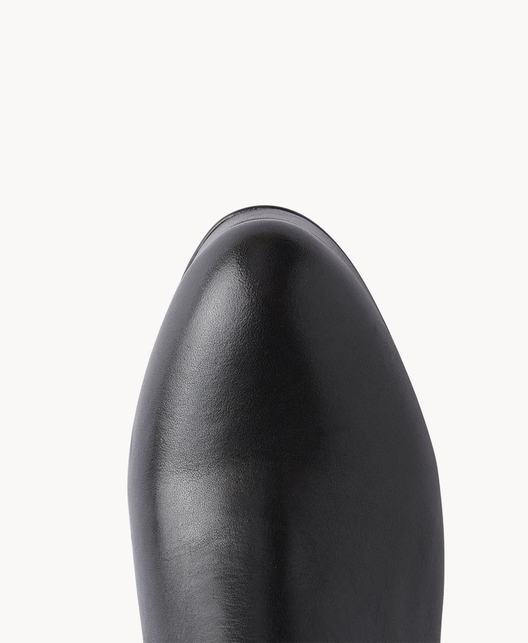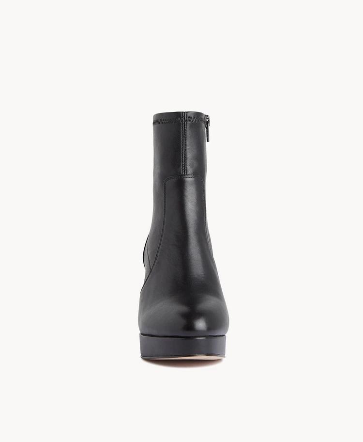 Felons silhouette is very of the moment, with a platform sole and block heel balanced with a sleek stretch sock-fit upper. Play with proportions and pair with short hem-lines and oversized layers.