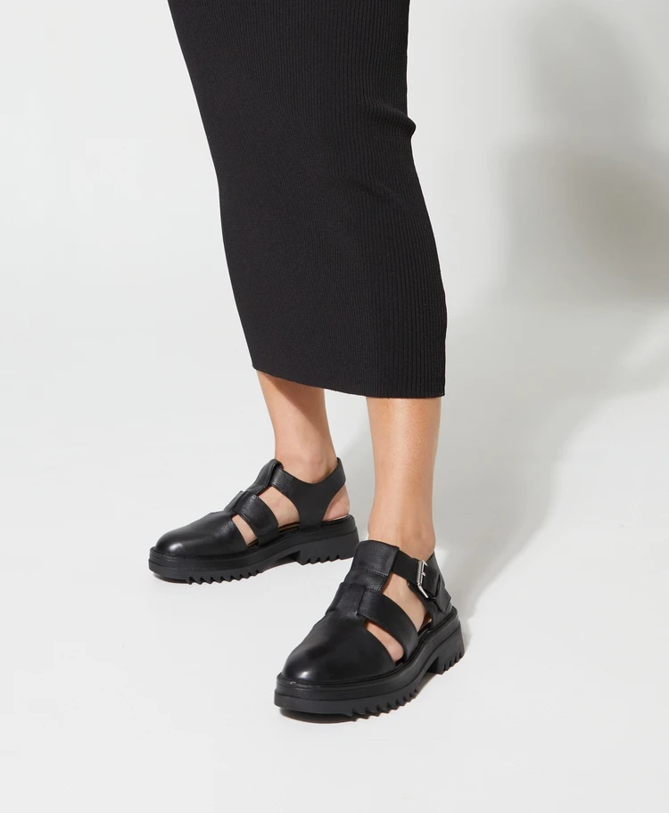 Lean into the grunge aesthetic with the Indiana flat. An adjustable buckle allows for the perfect fit, while the cut outs make them the perfect transeasonal statement style.