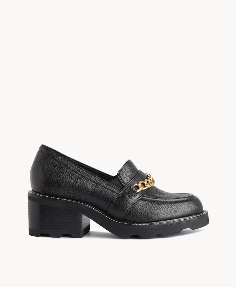 Celebrate the loafer revival with Justice. Cool, calm and collected Justice features a gold chain detail and chunky sole, perfect for the latest stirrup pants or with a tailored look, Justice is the perfect statement shoe that is both bold and practical.