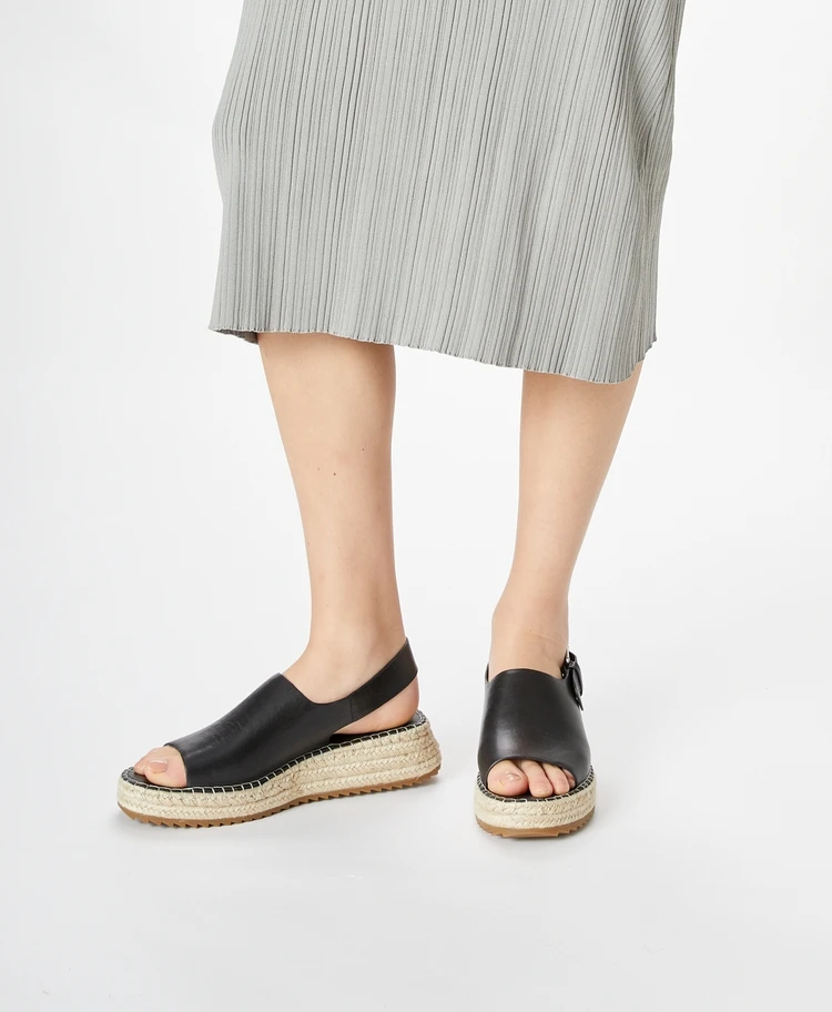 Larosa is a modern espadrille with a minimally styled upper crafted from premium leather. She also features a Jute wrapped platform sole and oversized metallic buckle detail, making her the perfect on- the- go style.
