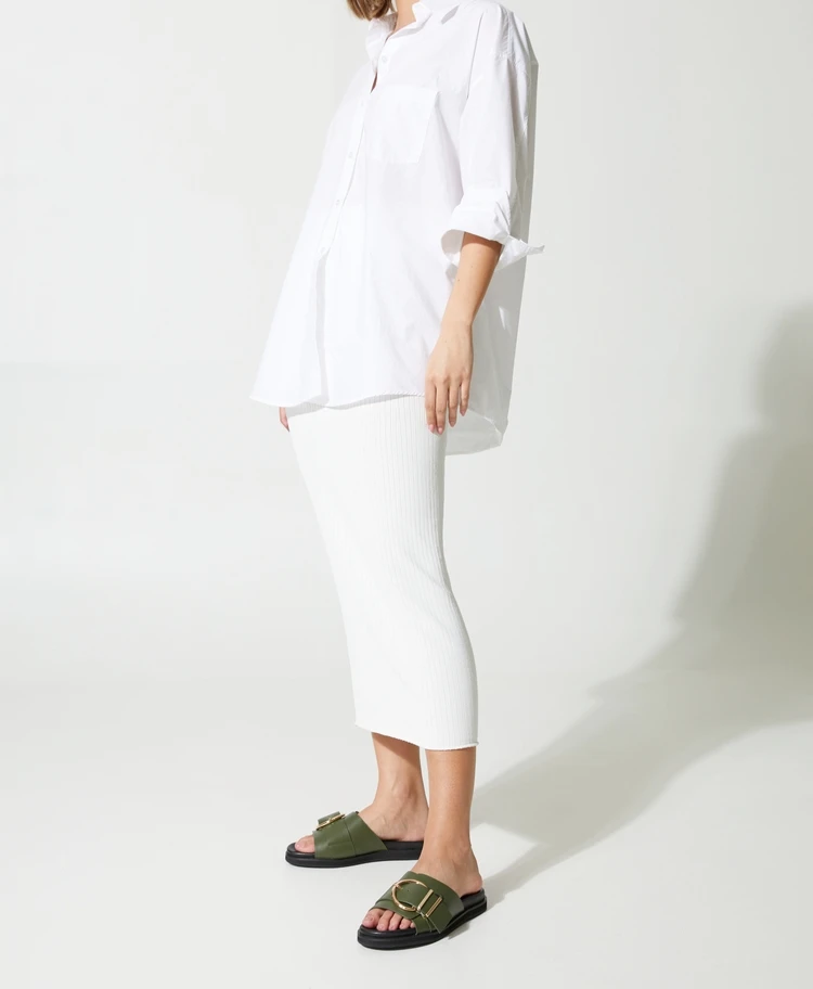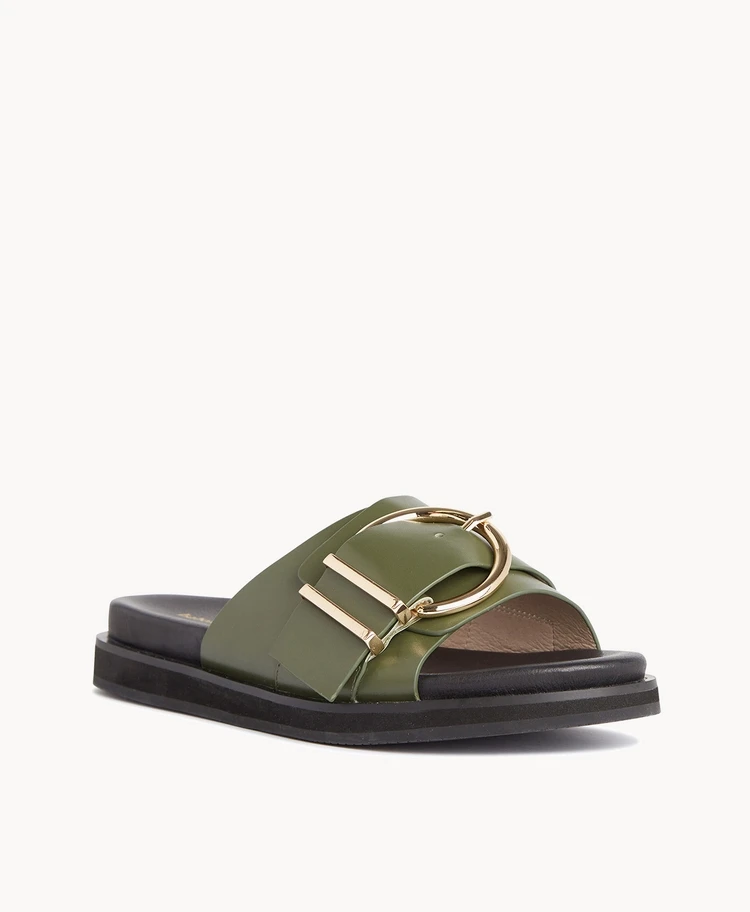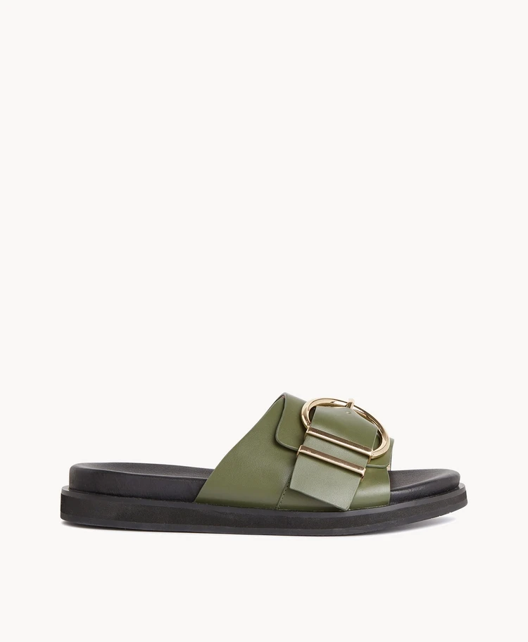 Soft gold hardware accentuates the simple elements of the Pearl slide. A flowing maxi skirt and bright colours are the perfect companion for this slip on.