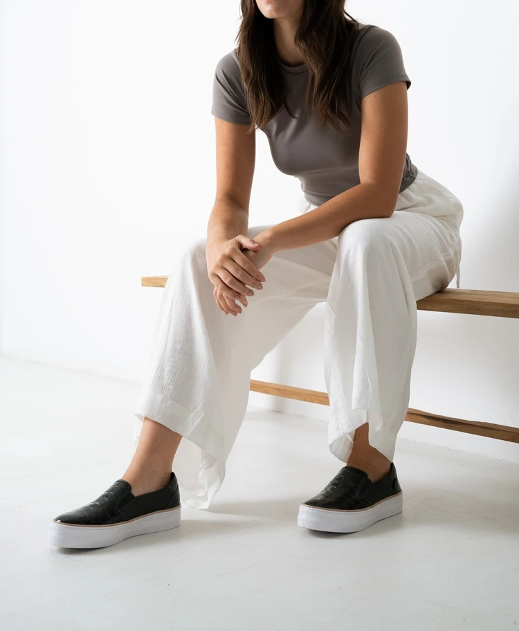 Super sleek and versatile, these slip on sneakers by Deuce are made from leather. They feature a vulcanised rubber sole with a topstitched leather rand, alongside the supportive and moisture wicking footbed that is the brand’s signature.