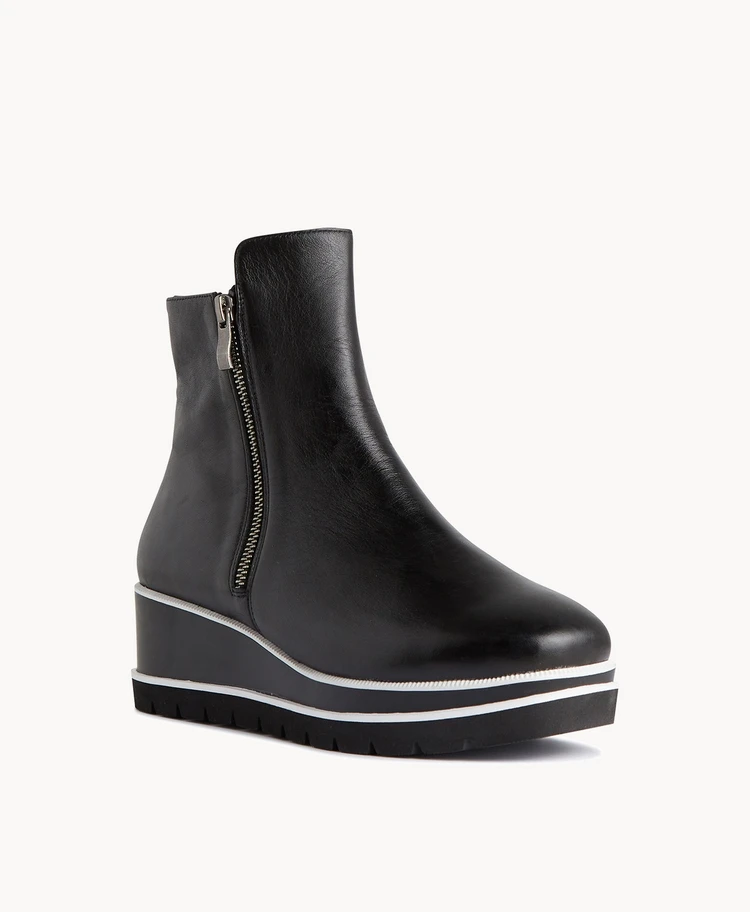 Our Sally ankle boot has a sporty EVA wedge sole that’s both statement making and super comfortable. The minimally styled upper will pair with anything from casual day-off looks for tailored 9-5 wear.
