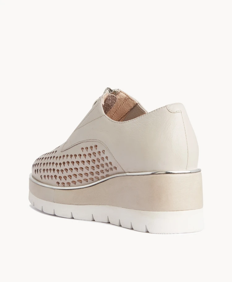 Set on a contrast platform sole, our Tylo wedge flat has perforated leather, and metal trim details that are perfect for matching with your favourite jewellery.