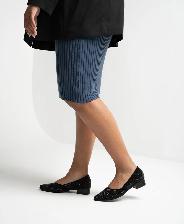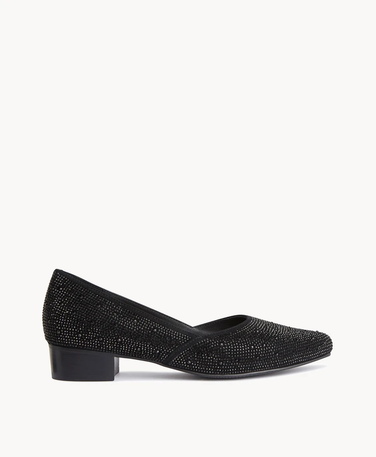 Our elegant waving ballet flat looks just as good with jeans as dressy outfits. The elegant toe shape and black diamante detail feels very vintage inspired.